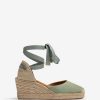 Alpargatas de ante confeccionadas en varios colores. atado al tobillo y con tacón de tela. Cuña de rafia trenzada con tacón de 7,5 cm y plataforma de 2 cm. nuestras sandalias candida son pura artesanía, perfectas para crear tu propio estilo personal.