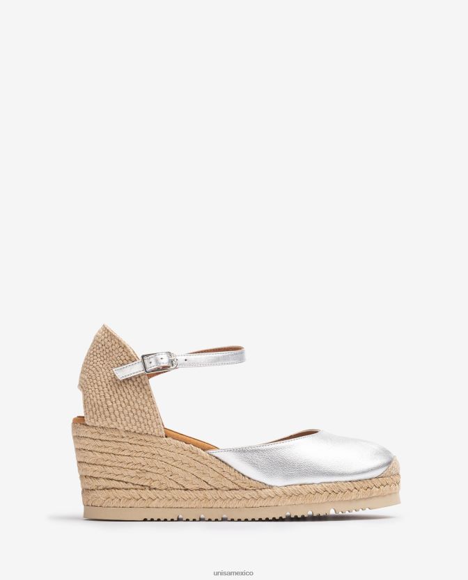 Unisa alpargata con tira al tobillo d’orsay efecto metalizado mujer TX8DN4733 plata