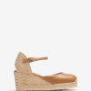 Alpargata con tira al tobillo d’orsay realizada en piel. Cuña de rafia color natural de 5cm de altura y plataforma de 1cm. Suela de eva más ligera y flexible que nunca gracias a la tecnología superlight. esencia mediterránea en zapatos unisa.
