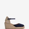 Alpargata estilo pala y tacón realizada en ante. Tobillera de rafia en color natural y tira ajustable que lleva hebilla. Tacón cuña de 7,5 cm y plataforma de 2 cm que va recubierta de yute trenzado. suela de goma antideslizante.