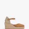 Alpargata estilo pala y tacón realizada en ante. Tobillera de rafia en color natural y tira ajustable que lleva hebilla. Tacón cuña de 7,5 cm y plataforma de 2 cm que va recubierta de yute trenzado. suela de goma antideslizante.
