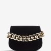 pequeño bolso de ante. Compartimento con cierre a presión magnético. Asa grande de cadena de plástico con acabado metalizado y asa bandolera a juego. Completa todos tus looks con este bolso unisa. tamaño: 13 cm x 19 cm x 6 cm