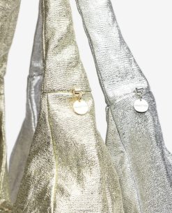 bolso de hombro grande confeccionado en tejido canvas metalizado. bolsillo interior con cierre de cremallera. tamaño: 57 cm x 46 cm x 14 cm
