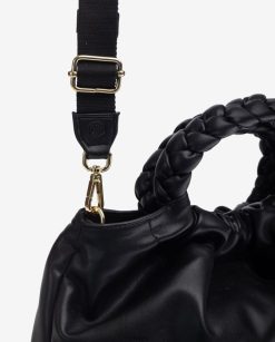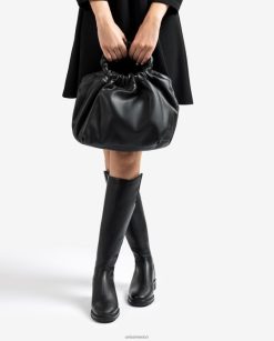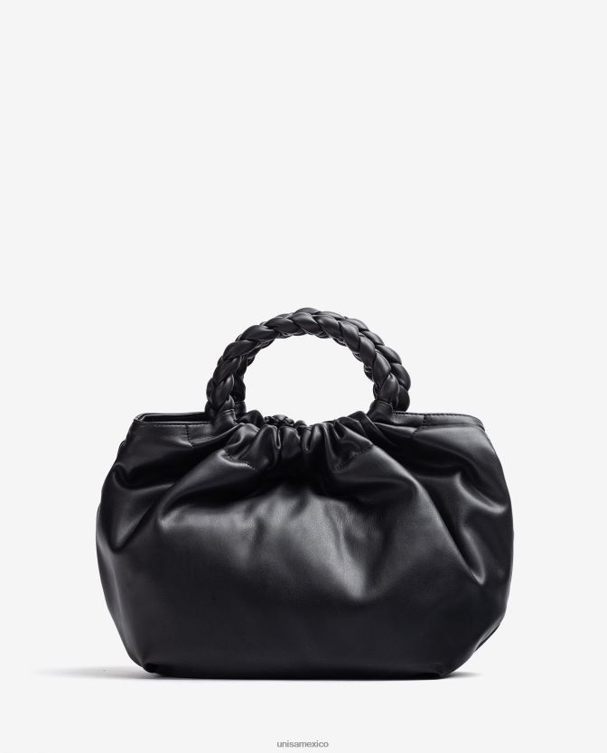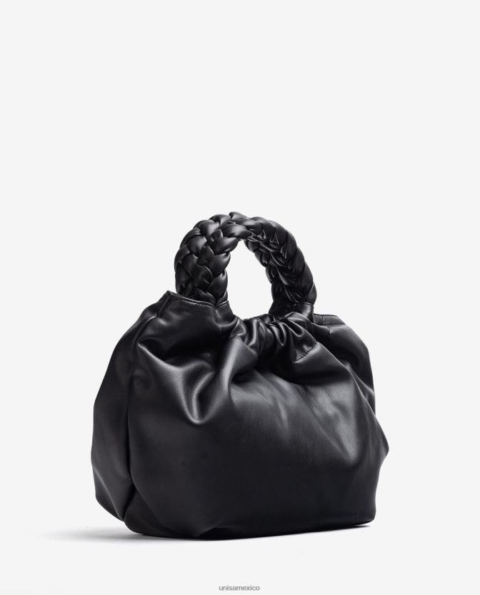 bolso de mano con asa redonda corta a juego. Asa bandolera ajustable a juego en el interior y cierre con corchetes magnéticos.