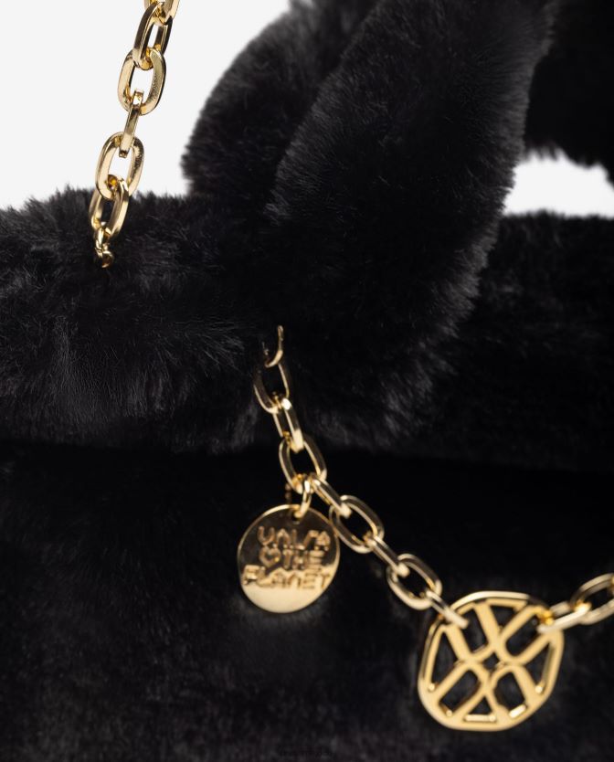 pequeño minibolso hecho de tejido de pelo suave reciclado. ribete de cadena y cierre de cremallera. Bandolera bandolera en el interior. 14 cm x 22 cm x 9 cm