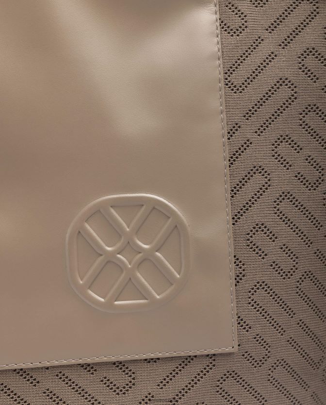 bolso grande confeccionado en tejido unisa estampado tono sobre tono. cierre de imán y bolsillo exterior con detalle de monograma. correa de hombro extraíble en el interior. unisa ama el planeta.31cm x 46cm x 14cm