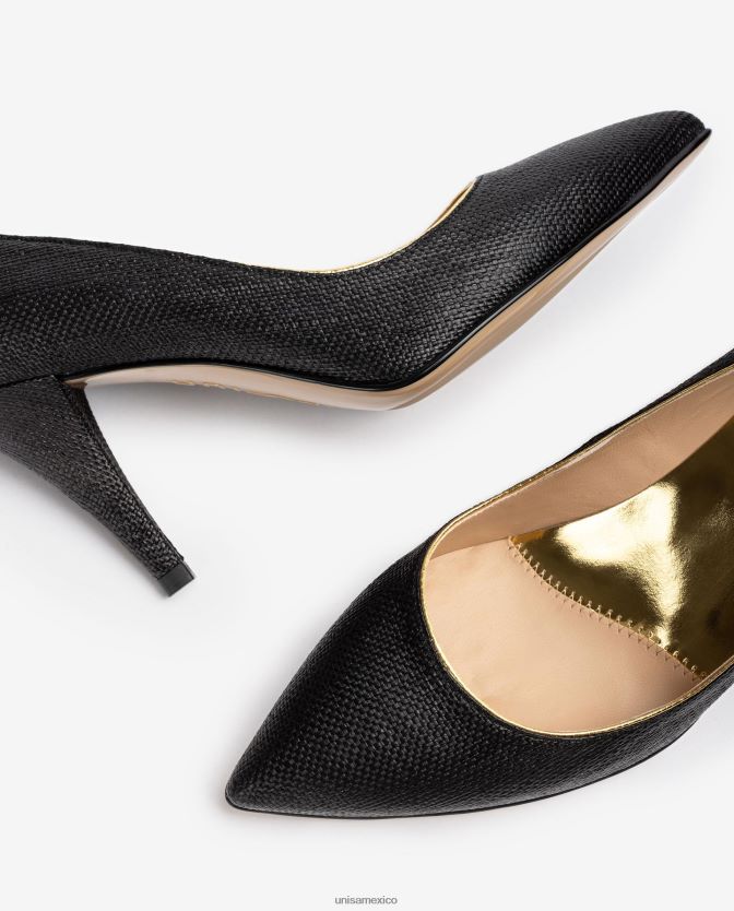 zapato de salón de punta fina realizado en rafia. Tacón de 8 cm de altura en tono a juego. Suela de goma ligera, flexible y antideslizante. la nueva colección unisa de cherubina te cautivará por su perfección.