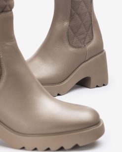 bota confeccionada en piel y tejido elástico elaborado a partir de botellas de plástico recicladas (pet). Suela superligera, muy ligera, flexible y cómoda. Tacón de 7cm de altura y plataforma de 2cm. las botas leiva de unisa serán tus grandes aliadas este invierno.