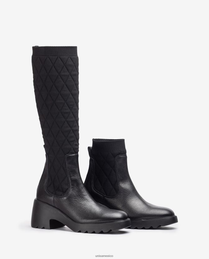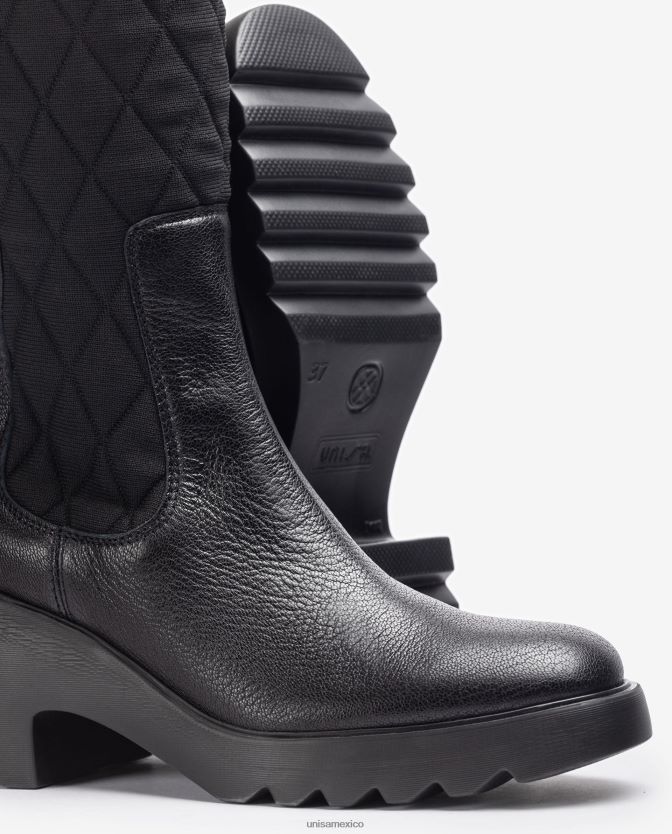 bota confeccionada en piel y tejido elástico elaborado a partir de botellas de plástico recicladas (pet). Suela superligera, muy ligera, flexible y cómoda. Tacón de 7cm de altura y plataforma de 2cm. las botas leiva de unisa serán tus grandes aliadas este invierno.