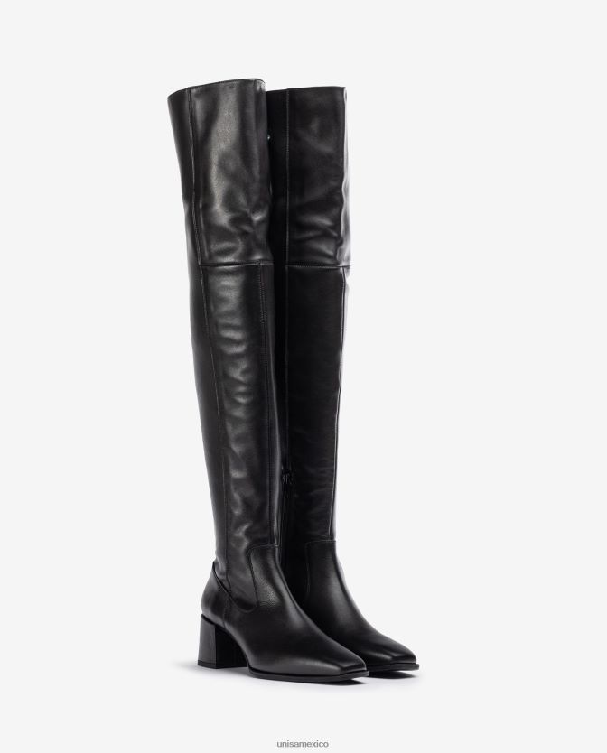 botas altas confeccionadas en piel y tejido elástico efecto piel. Tacón de 6 cm a juego. Suela ligera, flexible y antideslizante. un clásico imprescindible en el mundo unisa.