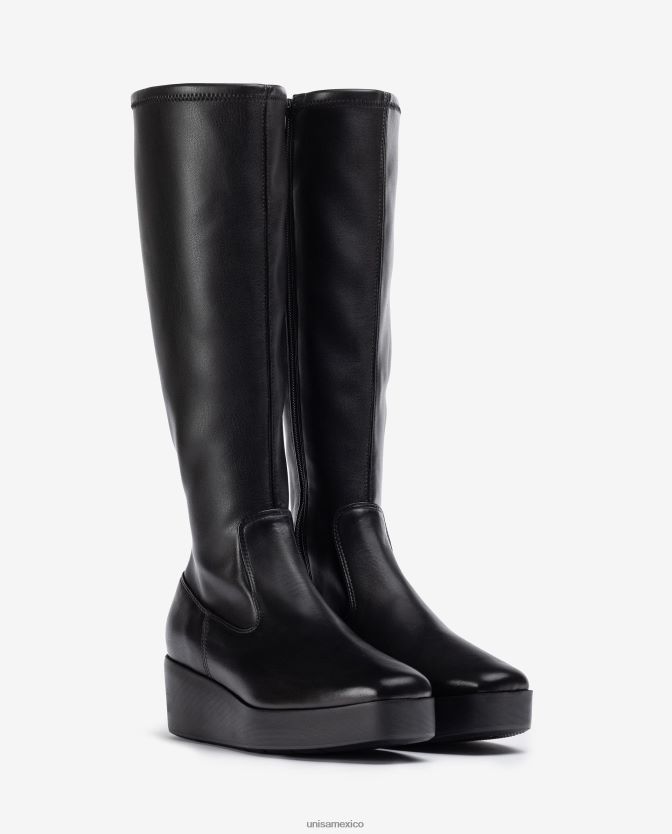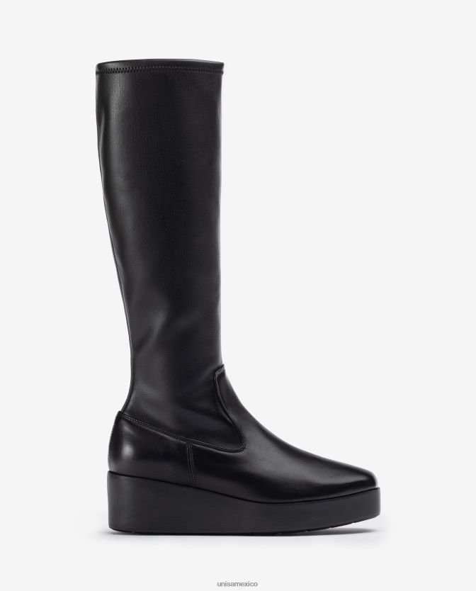 Bota de punta cuadrada confeccionada en piel y tejido efecto piel elastica con cremallera en el interior. Suela superligera, tacón de 5 cm y plataforma de 2,5 cm. el concepto superlight está diseñado para que lleves las botas más cómodas del mercado.