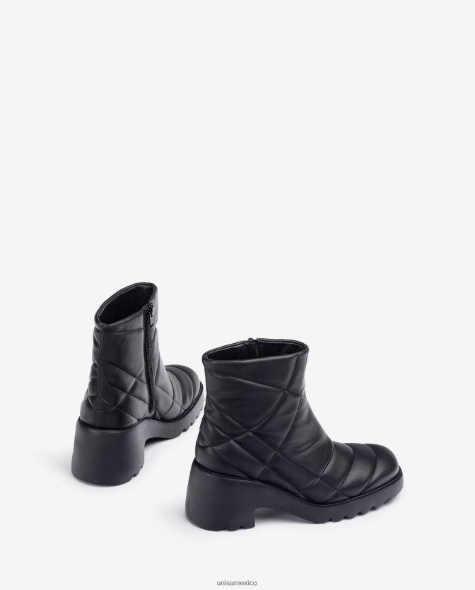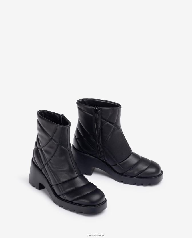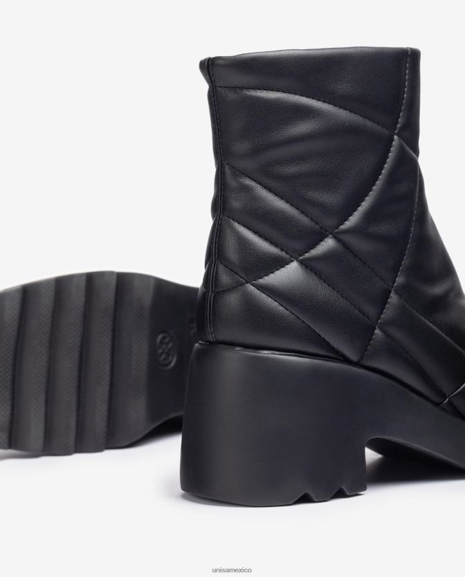 Botín acolchado con efecto geométrico realizado en tejido efecto piel. cremallera en el interior. Suela superligera, muy ligera, flexible y cómoda. Tacón de 7 cm de altura y plataforma de 2 cm. los lawren de unisa serán tus grandes aliados este invierno.