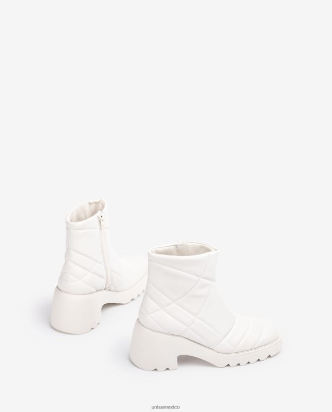 Botín acolchado con efecto geométrico realizado en tejido efecto piel. cremallera en el interior. Suela superligera, muy ligera, flexible y cómoda. Tacón de 7 cm de altura y plataforma de 2 cm. los lawren de unisa serán tus grandes aliados este invierno.