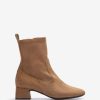 Botines de punta cuadrada confeccionados en tejido elástico efecto ante. Tacón de 4,5 cm a tono y suela de goma antideslizante, ligera y flexible. un clásico imprescindible en el mundo unisa.