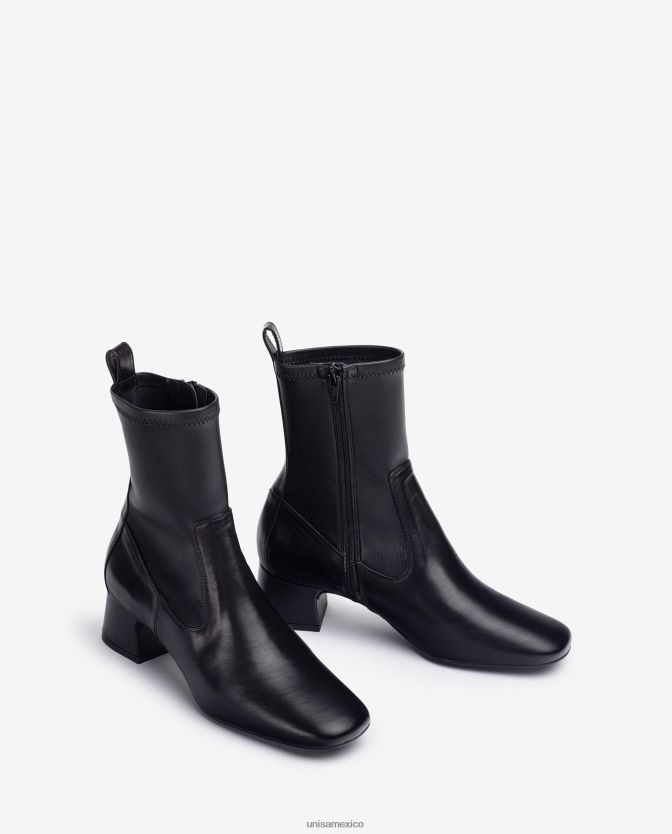 Botines de punta cuadrada confeccionados en piel y tejido elástico efecto piel. Tacón de 4,5 cm a juego y suela de goma antideslizante, ligera y flexible. un clásico imprescindible en el mundo unisa.