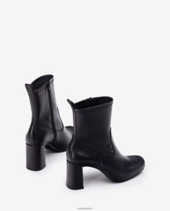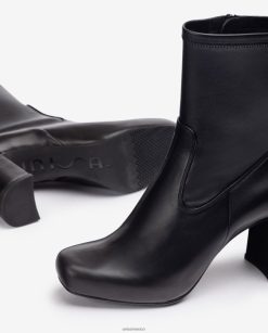 Botín de punta cuadrada elaborado en piel y tejido elástico efecto piel. Tacón de 8cm y plataforma interior de 1,7cm. Suela de goma ligera, flexible y antideslizante. ribete de costura en la parte delantera. un clásico imprescindible en el mundo unisa.