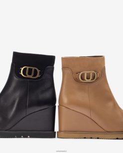 Botín de piel con cremallera en el interior. Cuarto de línea superior realizado en ante y ribete metálico en el lateral. Cuña ligera realizada con tecnología superlight de 8cm de altura en color a juego y plataforma de 1,5cm. unisa apuesta por nuevos diseños y creaciones para esta nueva temporada OI22.