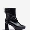 Botines de punta cuadrada confeccionados en piel y tejido elástico efecto piel. cremallera en la espalda y ribete de costura. Tacón ancho de 6 cm de altura y suela de goma ligera, flexible y antideslizante. las botas unisa están hechas a mano para decorar tus mejores momentos.