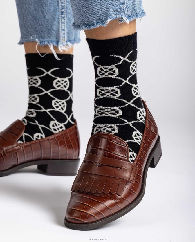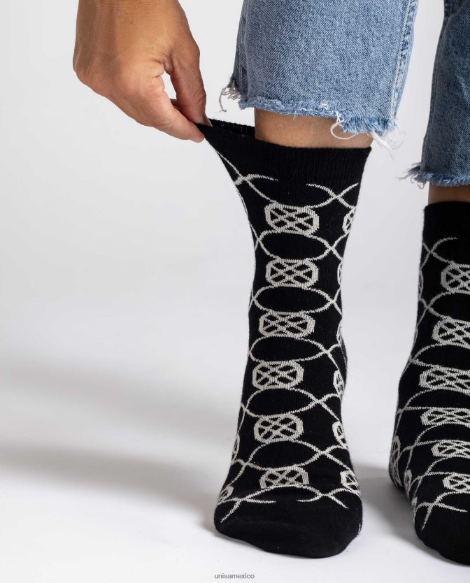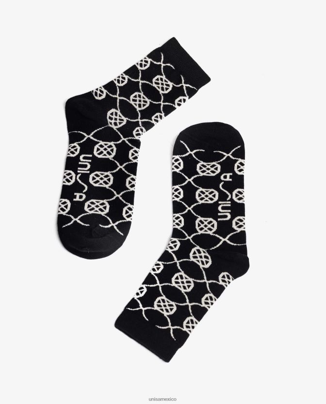 Calcetines de algodón orgánico a media pantorrilla. estampado de monograma en contraste. completa tu look unisa con estos calcetines.