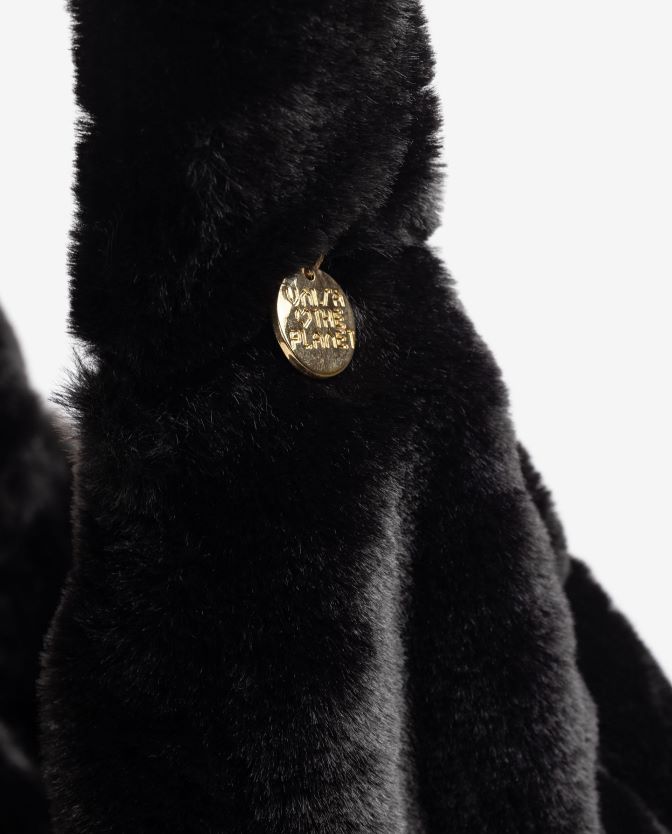 Bolso hobo de tamaño mediano confeccionado en tejido de pelo reciclado. Cierre con corchetes magnéticos y ribete con logo colgado en el asa. 31 cm x 35 cm x 17 cm