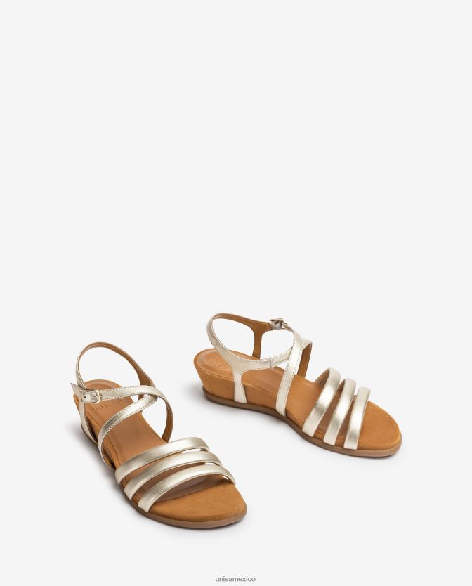 Unisa sandalia de tiras de piel con efecto metalizado mujer TX8DN4267 oro