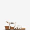Sandalia de piel con tiras efecto acolchado. Tacón cuña de 4,5 cm y suela de goma flexible, ligera y antideslizante. unisa reinventa las sandalias para el verano 2022.