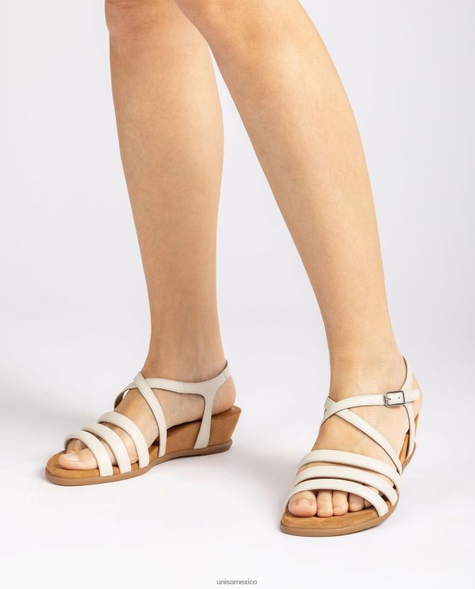 Unisa sandalia de piel con taco efecto madera mujer TX8DN4318 blanco