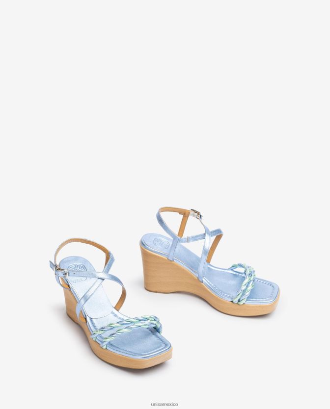 Unisa sandalia con cuña de piel con efecto metalizado mujer TX8DN4245 azul