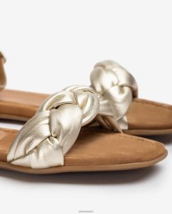 Sandalia plana en piel efecto metalizado. Empeine trenzado con tirantes acolchados. correa de tobillo ajustable que tiene una hebilla de metal. Suela de goma antideslizante, ligera y flexible. unas sandalias con un diseño marcado y rompedor perfectas para este verano.