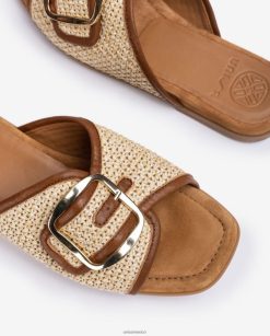 sandalia plana con punta cuadrada. Pala de rafia natural con ribete de piel. adorno de hebilla de metal. Suela de goma ligera, flexible y antideslizante. el diseño y la comodidad que te brinda unisa te acompañarán en todos tus pasos.