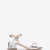 Sandalia de punta cuadrada realizada en tejido brillante. Tacón ancho a tono de 5cm de altura. correa de tobillo que se puede ajustar con la hebilla de metal. suela de cuero. Clásicos imprescindibles de unisa que se renuevan cada temporada.