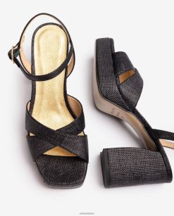 Sandalia de punta cuadrada confeccionada en tejido de rafia con pala de tiras. Plataforma de 3cm y tacón de 9cm. una correa de tobillo que se puede ajustar con la hebilla de metal. Suela de goma ligera y antideslizante. las sandalias ozzy serán tu mejor complemento para todos tus looks.