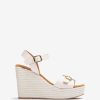 Sandalia de punta cuadrada confeccionada en tejido efecto espejo. correas cruzadas en la parte delantera y una correa en el tobillo que se puede ajustar con la hebilla de metal. Cuña de 5cm de altura recubierta de rafia natural y plataforma de 3cm. Suela de goma ligera y antideslizante. comodidad llevada a su máximo esplendor.
