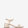 Sandalia de punta cuadrada realizada en piel efecto metalizado. Tacón ancho de 5 cm a juego y tira trenzada en la parte delantera. correa de tobillo que se puede ajustar con la hebilla de metal. suela de cuero.