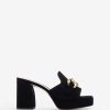 salón de punta cuadrada realizado en ante. Plataforma de 3 cm y tacón de 9 cm revestido en ante del mismo tono. ribete de cadena metálica en el empeine y suela de goma ligera y antideslizante. las sandalias oberon serán tu mejor complemento para todos tus looks.