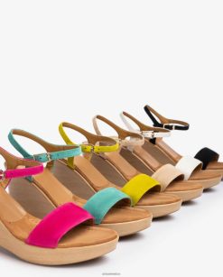 Sandalia de ante en varios colores, tira en el empeine ajustable con hebilla metálica. Bloque efecto madera pu con tacón de 8,5 cm y plataforma de 2 cm. esencia unisa en estado puro.
