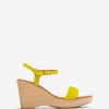 Sandalia de ante en varios colores, tira en el empeine ajustable con hebilla metálica. Bloque efecto madera pu con tacón de 8,5 cm y plataforma de 2 cm. esencia unisa en estado puro.