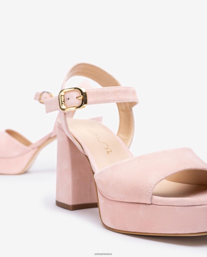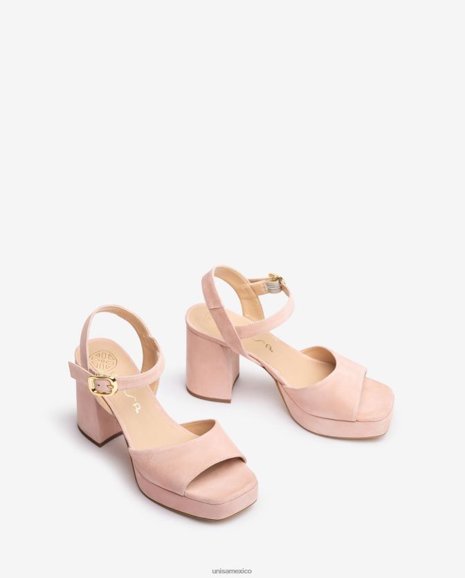 Unisa sandalia de ante con tacón ancho mujer TX8DN46 rosa