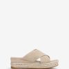 Sandalia de ante con tiras anchas cruzadas en el empeine. la suela está cubierta de yute, en el tacón mide 5 cm y en la parte delantera 3,5 cm. suela de goma ligera y antideslizante.