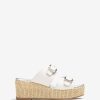 Sandalia de punta cuadrada realizada en piel. Doble tira en el empeine que se puede ajustar mediante las hebillas doradas. Cuña forrada en rafia natural de 5cm y plataforma de 3cm. Suela de goma ligera y antideslizante. comodidad llevada a su máximo esplendor.