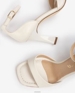 Sandalia de punta cuadrada realizada en piel. Tacón de 8 cm pintado al tono. una correa de tobillo que se puede ajustar con la hebilla de metal. Espuma gruesa en toda la suela para mayor comodidad. acabados artesanales de lujo.