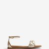 Sandalia plana de piel con acabado metalizado. Tirantes anudados en la parte superior del empeine. correa de tobillo que se puede ajustar con la hebilla. suela de goma antideslizante, ligera y flexible.