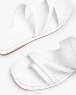 Sandalia plana de punta cuadrada realizada en piel. tiras finas sobre el empeine y entre los dedos. Suela ligera, flexible y antideslizante. ¡estilo moderno y fresco para tus pies!
