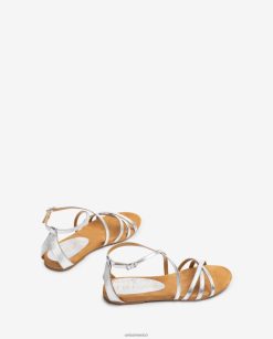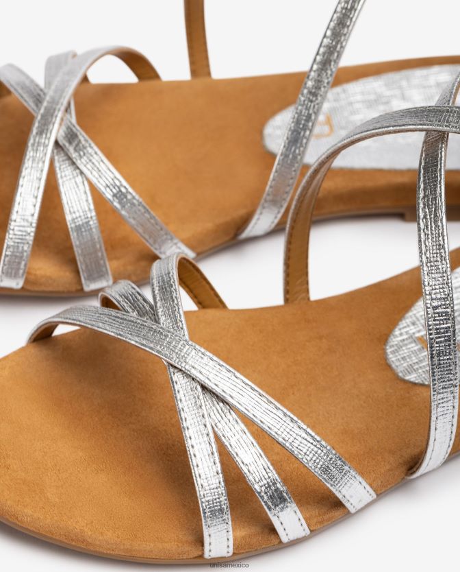Unisa sandalias planas de piel metalizada mujer TX8DN4391 plata