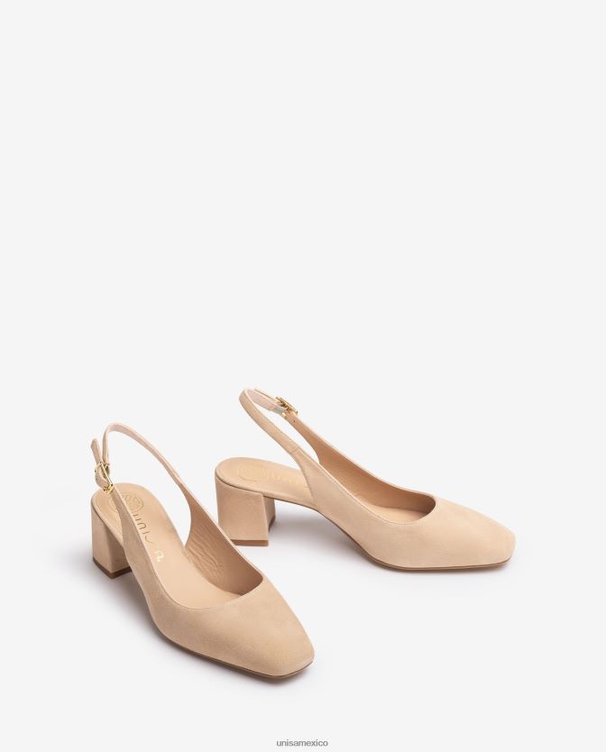 sling back de punta cuadrada confeccionado en ante. Tacón ancho de 6cm a juego. Suela de goma ligera, flexible y antideslizante. Clásicos imprescindibles de unisa que se renuevan cada temporada.