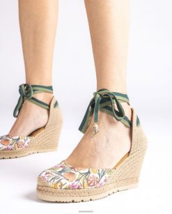 alpargata de punta redonda de edición limitada. confeccionado con tejido cien por cien algodón y un estampado diseñado para unisa por la ilustradora mercedes bellido, inspirado en el mediterráneo. Cuña de 7,5 cm de altura recubierta de yute natural y plataforma de 1 cm. Tiras ajustables de algodón alrededor del tobillo y exclusivos adornos de metal dorado en los extremos.