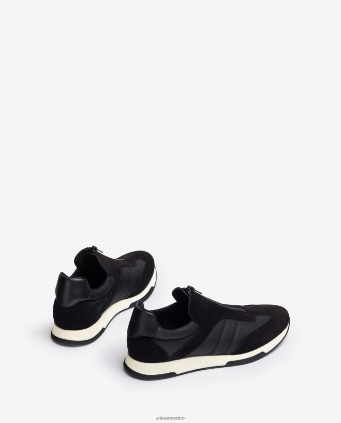 Zapatilla deportiva confeccionada en ante y tejido con cremallera en la parte delantera. suela supersoft de goma ligera, flexible y antideslizante y plantilla extraíble y ergonómica que reduce la fatiga provocada por la marcha. forro interior de respilon. un concepto urbano y sofisticado que encaja a la perfección con la filosofía unisa.