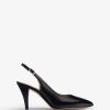 Zapato destalonado plano de piel con la puntera en piel negra a contraste. Línea superior con corte en V y correa en el talón que se puede ajustar con la hebilla de metal.