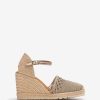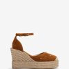 Alpargata de ante estilo empeine. correa impresa que se ata alrededor del tobillo. Ribete de pespuntes a contraste en el empeine y en la tira del tobillo. Tacón cuña forrado en yute de 9 cm y plataforma de 2,5 cm. suela de goma ligera y antideslizante.