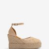 alpargata de tejido reciclado. Nuestro tejido ecolino está fabricado con botellas de plástico 100% recicladas. correa de tobillo ajustable con hebilla de metal. Tacón cuña forrado en yute de 10 cm y plataforma de 3,5 cm.